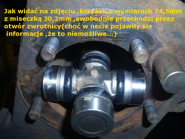 tam są jakieś kombinacje z tymi zwrotnicami i półosiami.w expo 1 są widocznie przynajmniej 2 rodzaje zwrotnic(chodzi o wielkość otworu na półoś) i 2 rodzaje półosi z większymi i mniejszymi krzyżakami w DANA 35.jeżeli te wielkości idą w parze np u mnie mniejsze krzyżaki i mniejszy otwór w zwrotnicy to jest wszystko ok(dlatego kiedyś się sprzeczałem z mysioo że krzyżak nie może być większy bo nie przejdzie przez otwór-brałem pod uwagę mój przykład z doświadczenia).jednak u mikado być może ktoś wymieniał półosie na inne i już jest lipa lub fabrycznie tak składali.wychodzi na to że trzeba przed zakupem nowych krzyżaków zmieżyć oryginały.