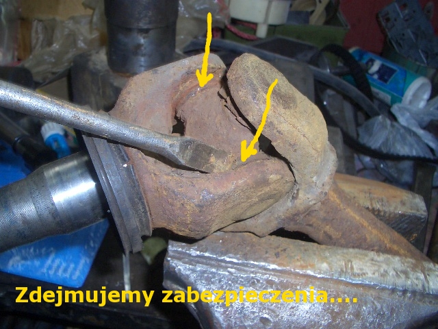 nie wiem po co tak to jest ale ta zmota utrudnia życie nieprzeciętnie, bo żeby wymienić krzyżaki są dwie opcje [przećwiczyłem obydwie]: demontaż całego mostu albo wybijanie sworzni zwrotnic