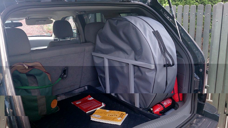 Padło też na przewóz koła zapasowego. Bagażnika dachowego nie biorę pod uwagę, bo wtedy w garażu się nie zmieszczę po lifcie.