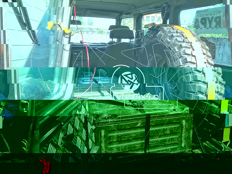 1. zabudowa sklejka/osb/mdf tuż nad wystającymi nadkolami + stalowy pionowy stelaż na koło zabezpieczone pasami transportowymi