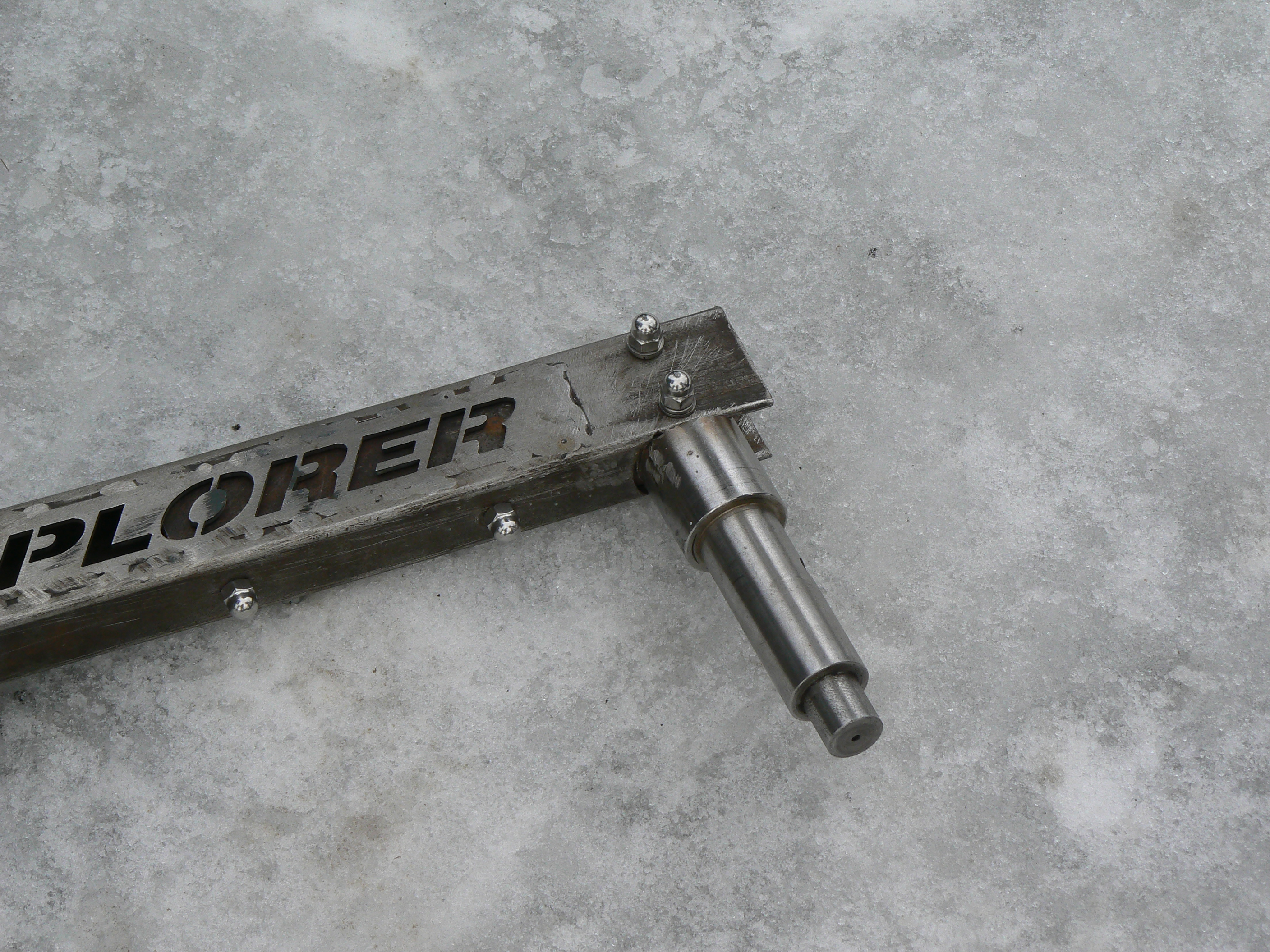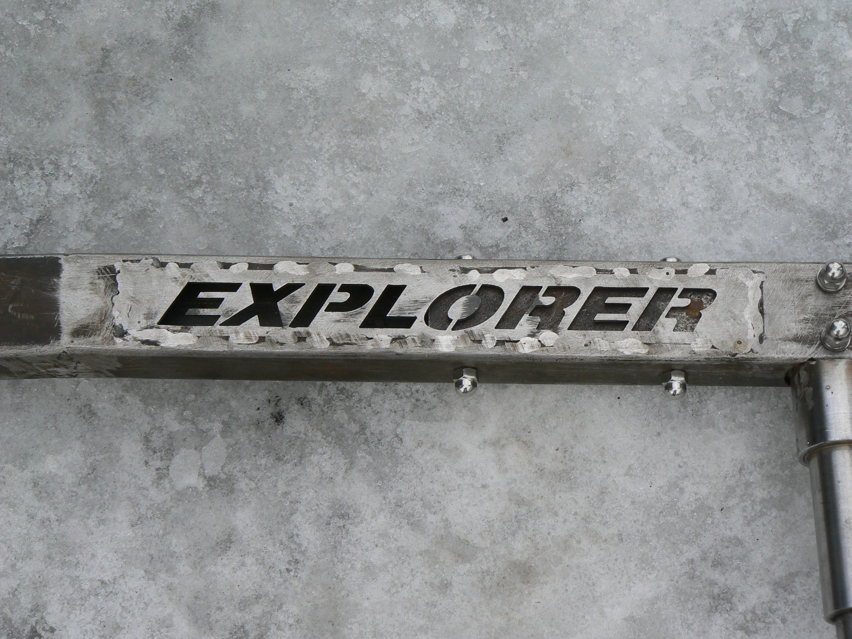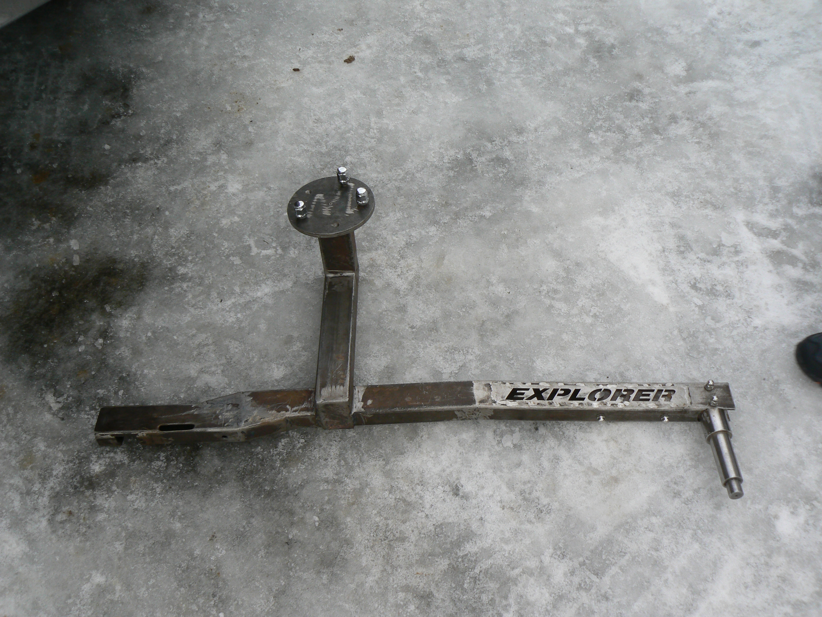 hehe,świstak-dobre.to nie jest mój wyrób,ale forumowego kolegi Wesa.pokazał to na zlocie w łopusznej i mi się spodobało.starannie zrobione i z głową.nie widać żadnej zmoty na zewnątrz auta tylko "szlaban"i kółko.duże wrażenie zrobił na mnie napis "explorer"wypalony laserem.głębiej,pod tym napisem w planie jest blacha kwasowa dla poprawienia efektu.powiem wam że po obróbce końcowej Aso forda by się nie powstydziło gdyby mieli takie mocowanie w swojej ofercie.
