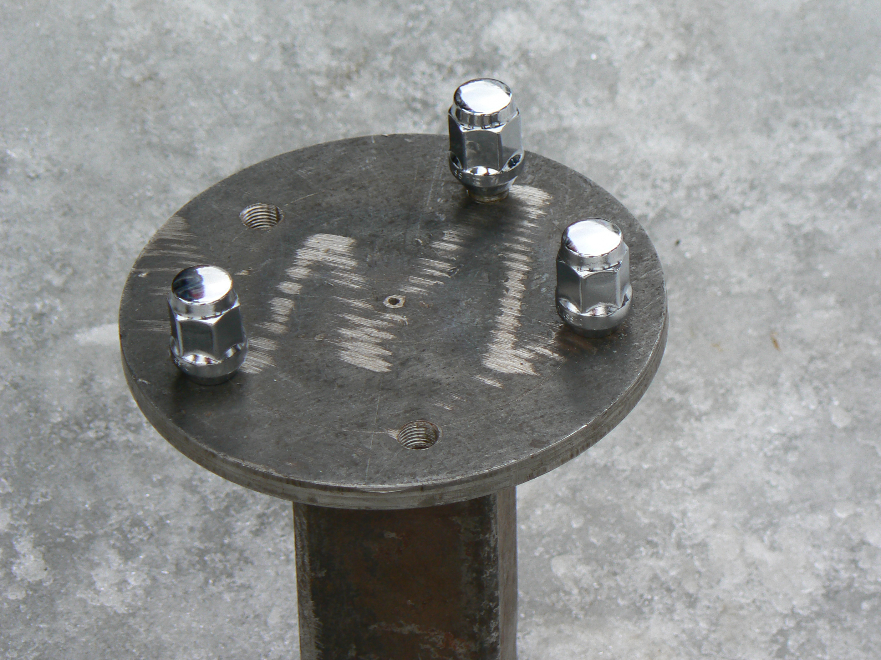 Po pierwsze - już prosiłem kiedyś, by osoba, która ma dostęp do szerokiego zrobiła zdjęcia mocowania. Koło tam jest na specjalnym stelażu. Nie wiem tylko do czego to jest przypięte (blacha, rama?).