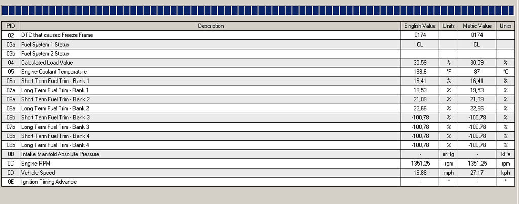 no a bledy to nadal P0171 Bank 1 Lean, P0174 Bank 2 Lean, tylko ze dalej ten pdf podaje te wartosci jako wskazania Fuel Monitor Operation i dalej Sensors OK Fuel Rail Pressure (if available) - czyli cos zwiazane z cisnieniem paliwa i pompa ???