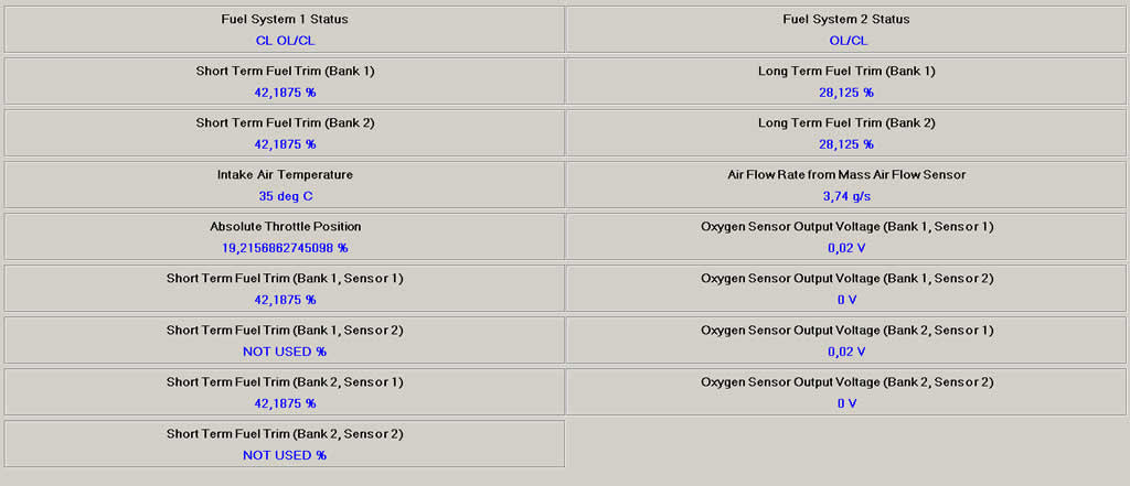 .....choć podobno kody P0171 i P0174 odnoszą się do do paliwa i pomiaru zasilania silnik w powietrze komunikat w stylu "system too lean" sugeruje za ubogą mieszankę...