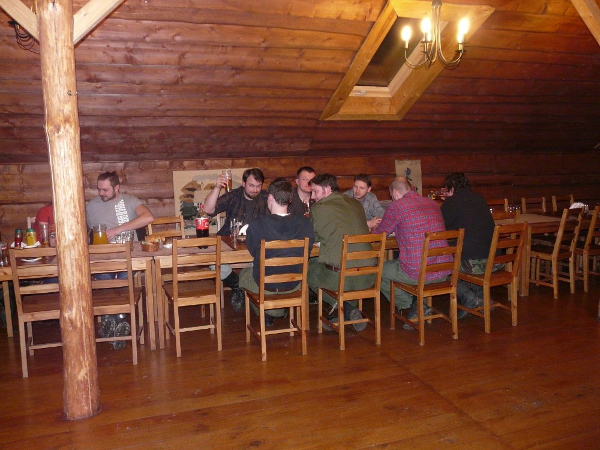 Wycieczkę zakończyłem niestety przedwcześnie ratując zakopanego w śniegu Jimny'ego. Wyciągnąłem go z zaspy, ale sam lewą stroną wpadłem w spulchnioną ziemię na polu tak, że tym razem to mnie trzeba było ratować. Zrobiło się ciemno, więc stwierdziłem, że ostatni odcinek przejadę już asfaltem na miejsce zakończenia imprezy. A kończyliśmy w karczmie pod Górą Kalwarią, gdzie dostaliśmy ciepły posiłek, chleb ze smalcem i piwo bez limitu ;)