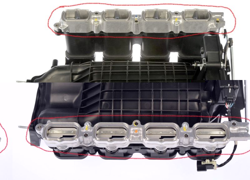 W Explorerach z lat 2006-2010 z silnikiem 4.6 V8 kolektor ssący ma dodatkowe klapy a fachowo nazywa się to CHARGE MOTION CONTROL PLATES ( na zdjęciu zaznaczyłem ten element na czerwono) jest on sterowany elektrycznie przez silniczek do którego idą 2 cięgna na lewą i prawą stronę. Na mocowaniu tych cięgien do ośki miałem nieszczelność..... ( niektórzy wymieniają te klapy na dokładkę bez klap i wtedy auto jedzie troszkę gorzej z dołu ale górę ma lepszą (podobno), na Ebay można kupić takie zestawy Steeda za ok 200$)